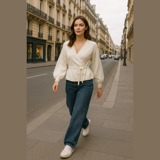 Heidi | Ensemble Deux Pièces avec Haut à Col en V & Pantalon à Taille Large pour Femme