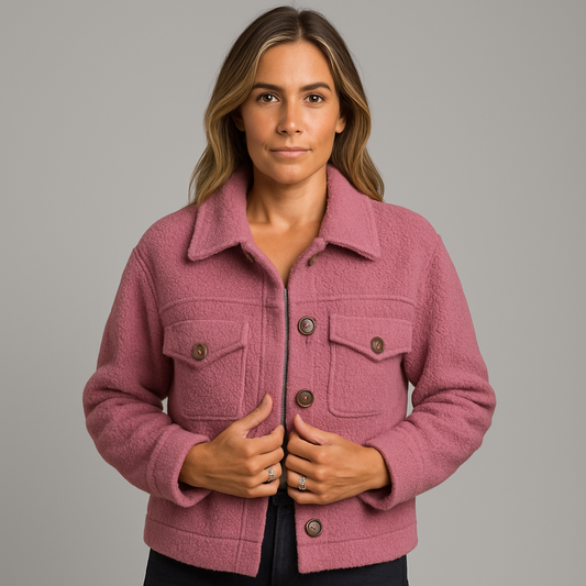 Veste Courte en Laine avec Poches et Col Classique pour Femmes