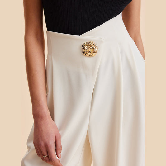 Haniya | Pantalon Femme Taille Haute à Jambes Larges avec Boutons Dorés
