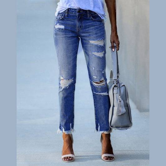 Emmi | Jean ajusté déchiré avec avant côtelé pour femmes