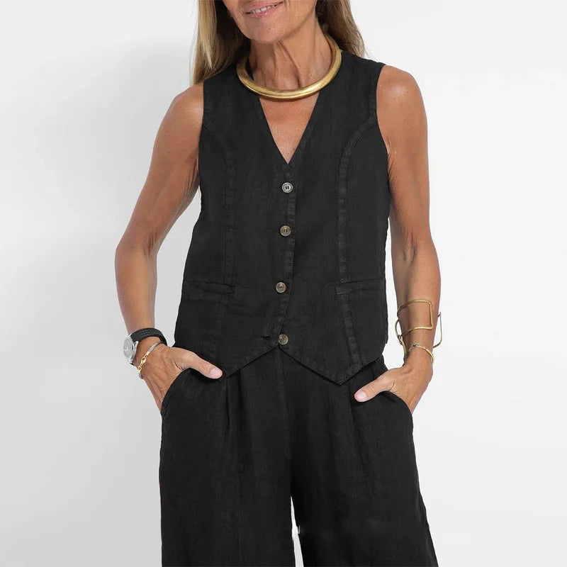 Alinna | Ensemble Gilet en Lin et Pantalon Large pour Femme