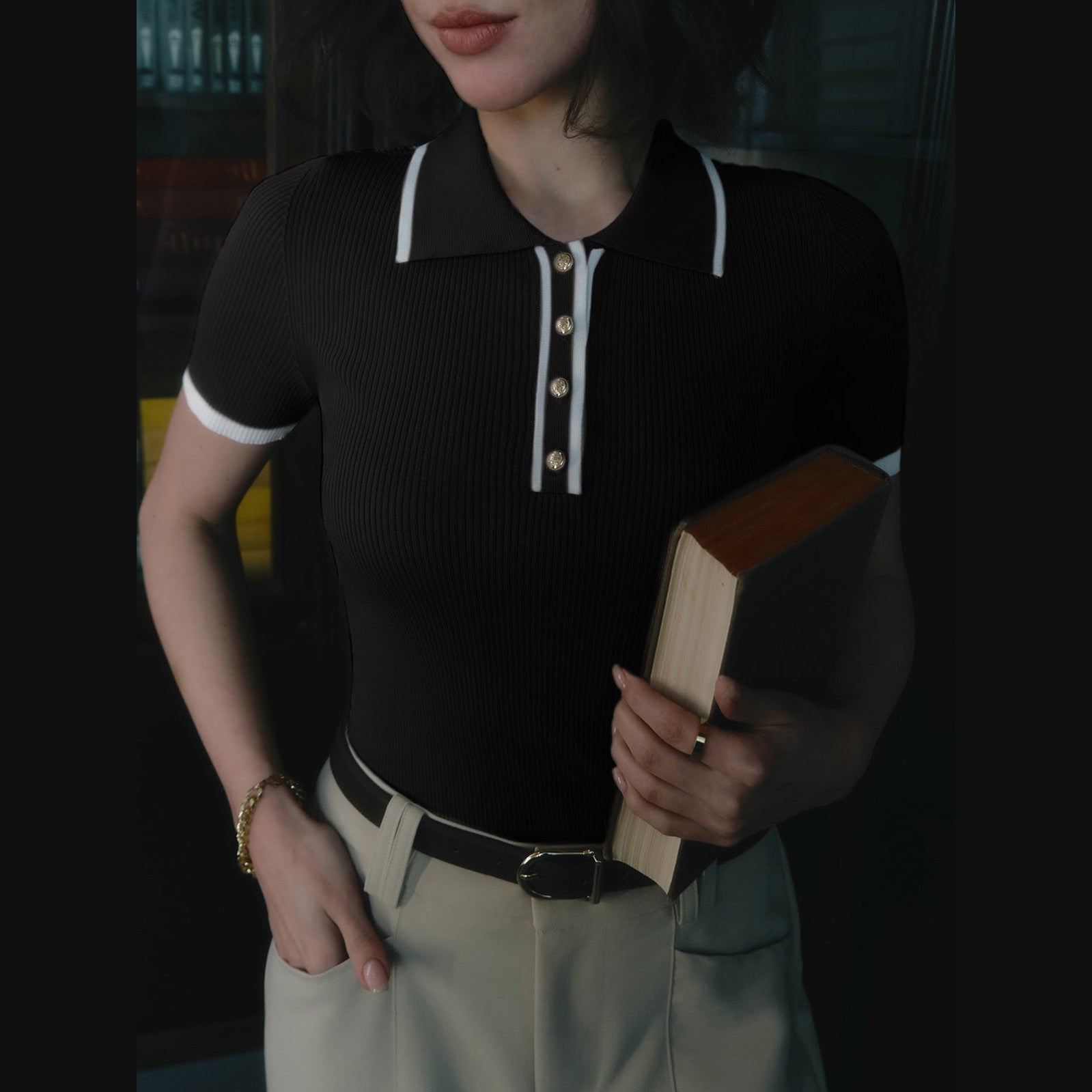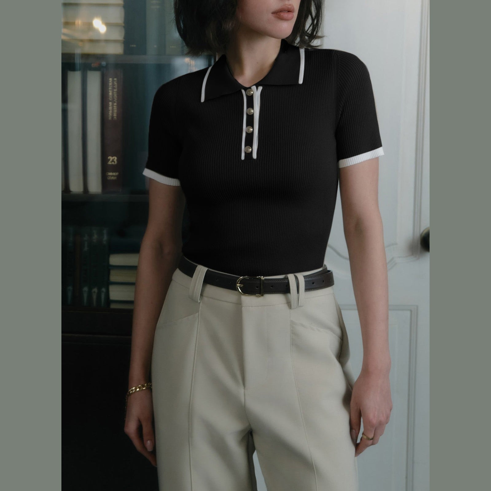 Danica | Haut polo côtelé classique avec détail de boutons pour femmes