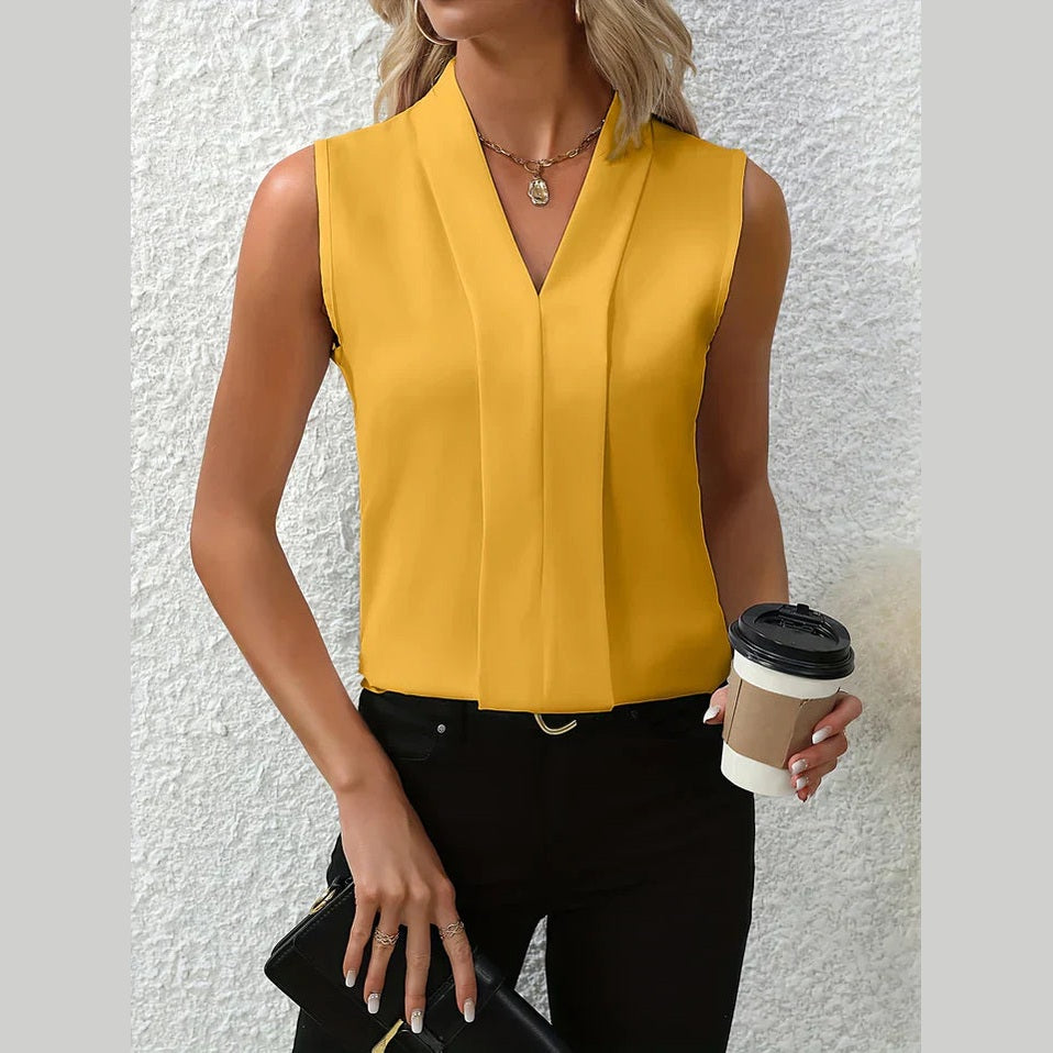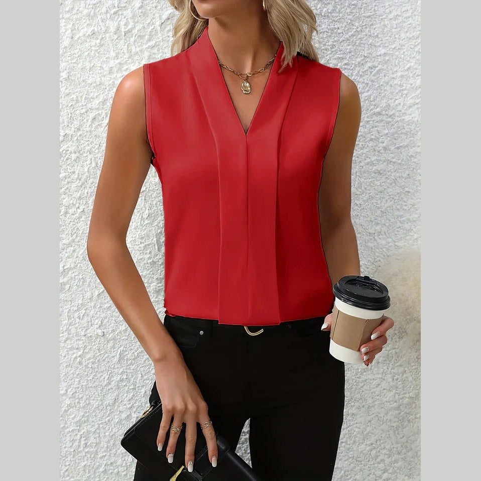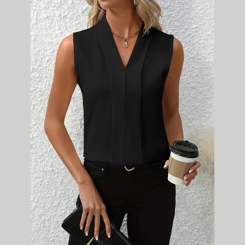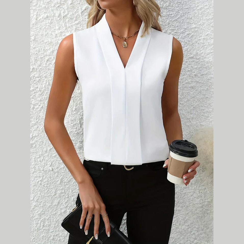 Le haut Klarissa est conçu à partir d'un tissu de haute qualité et respirant qui garantit un confort durable tout au long de la journée. Son design sans manches offre une sensation de légèreté et de liberté, vous gardant à l'aise même lors des journées plus chaudes. Que ce soit lors d'une réunion formelle ou pour une sortie décontractée, ce top allie style et confort.