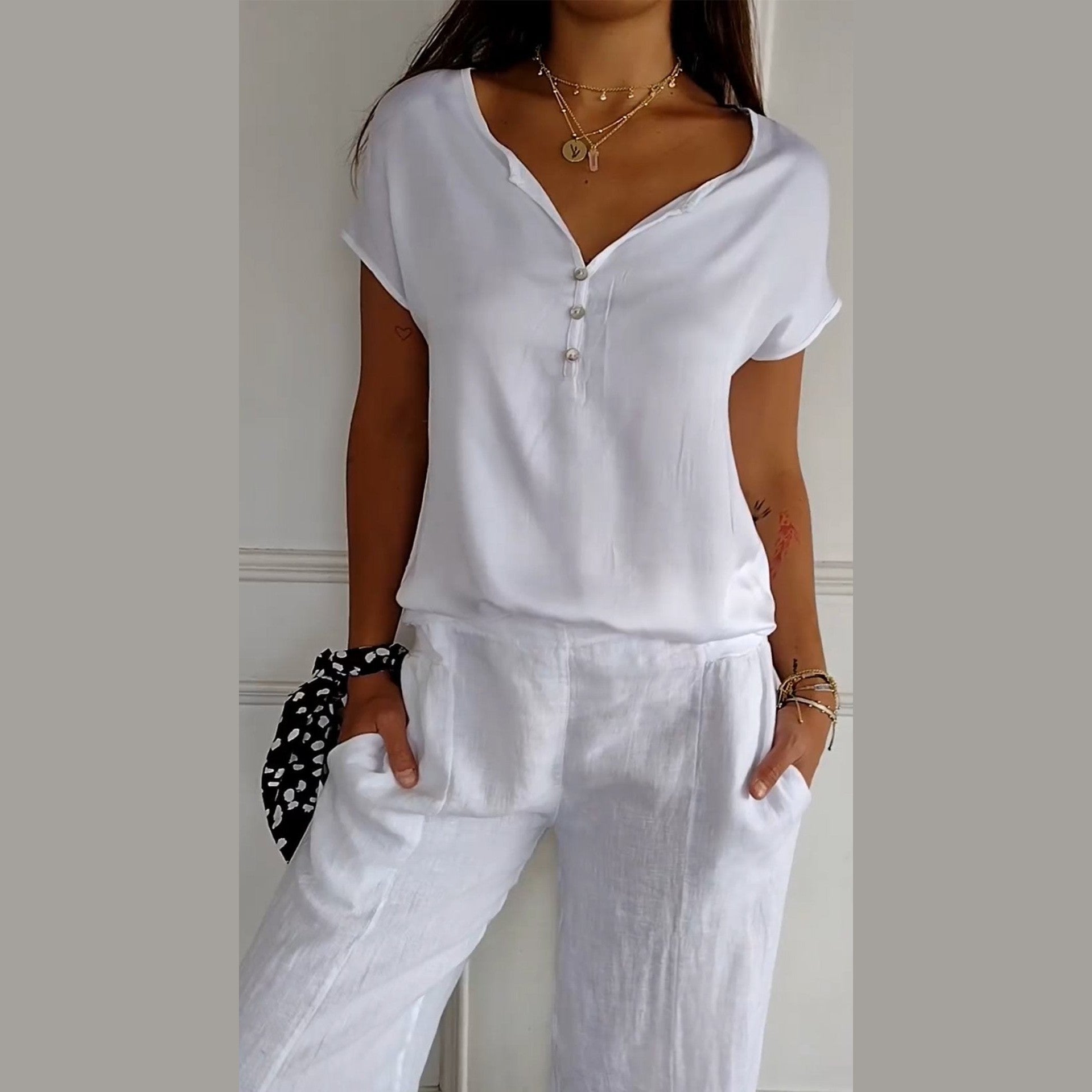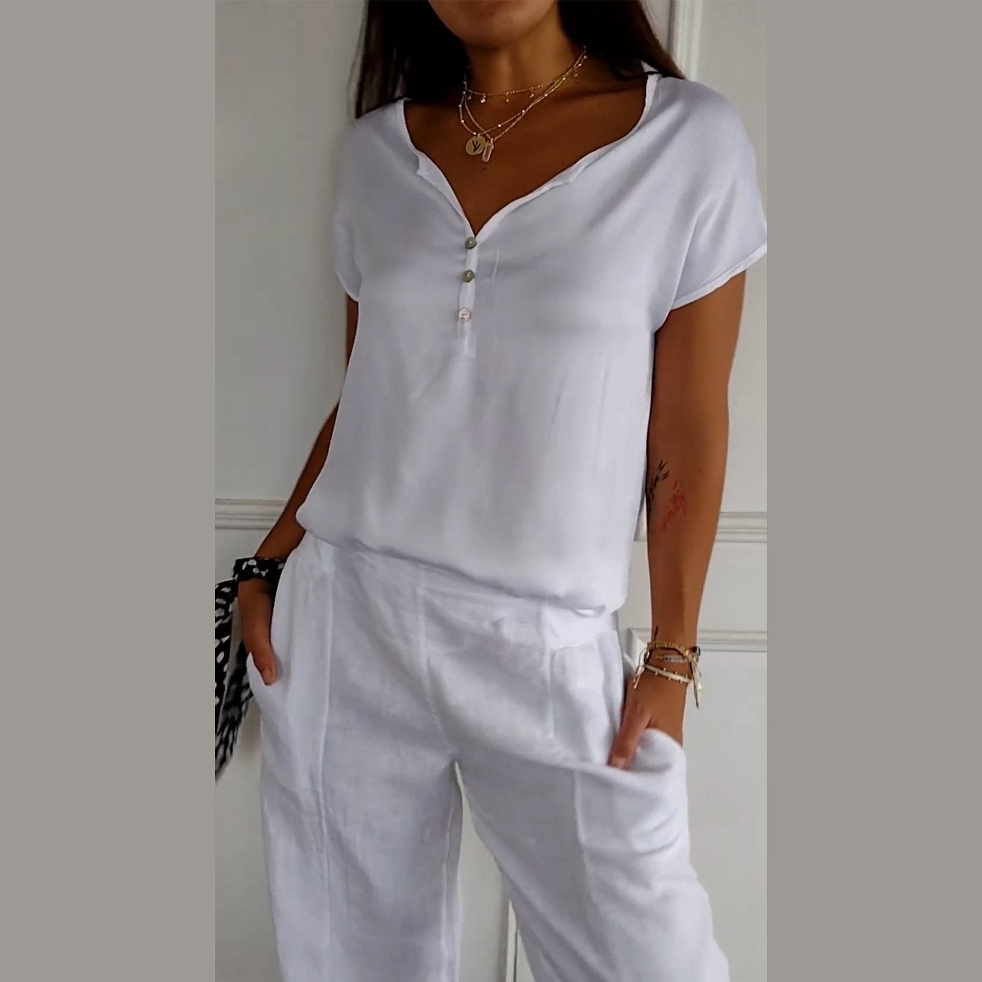 Découvrez le chemisier Noélie, un indispensable pour votre garde-robe estivale. Avec son décolleté en V tendance, ce haut vous offre une allure élégante et décontractée tout en assurant un confort optimal pour les journées chaudes. Parfait pour les moments de détente ou pour ajouter une touche raffinée à vos tenues quotidiennes.
