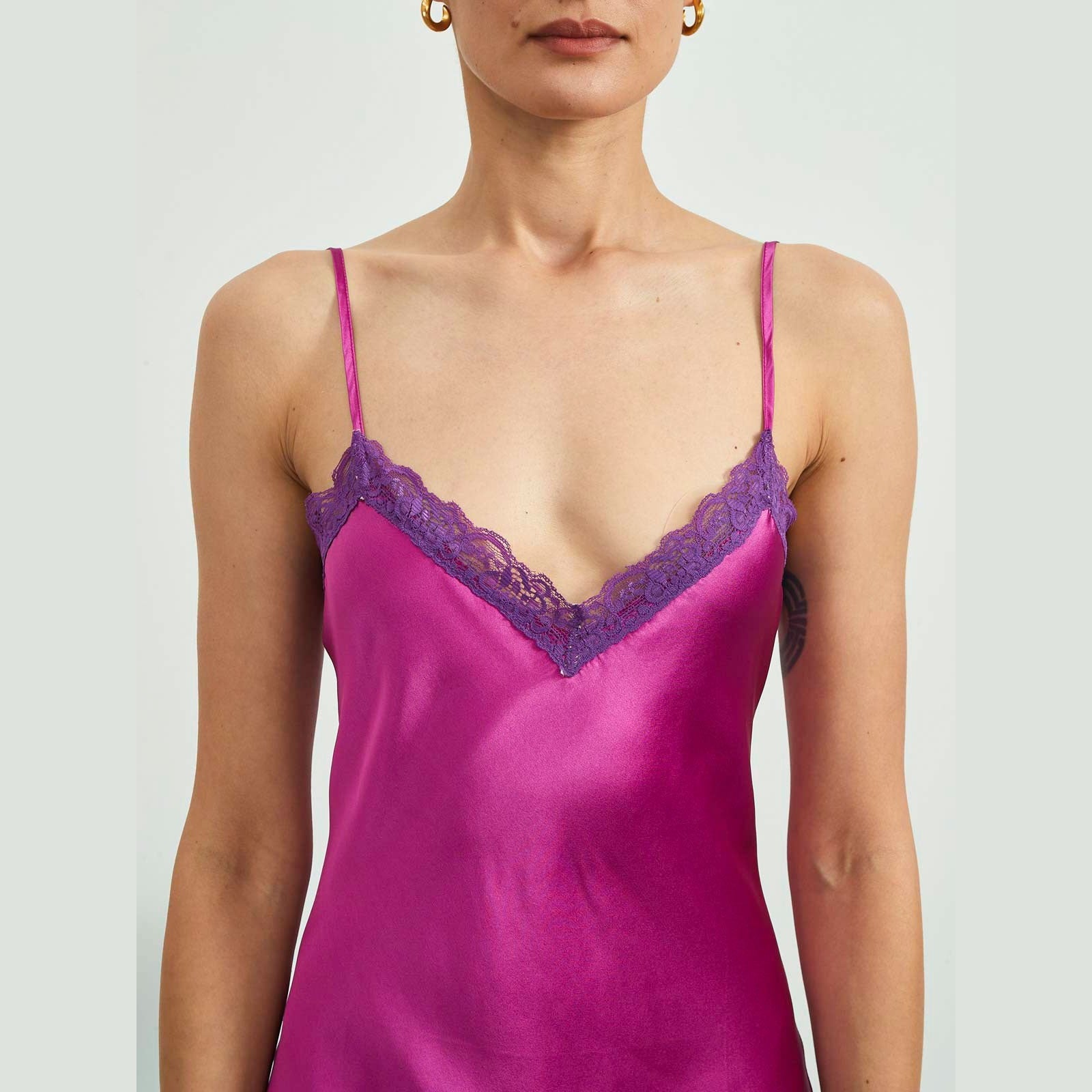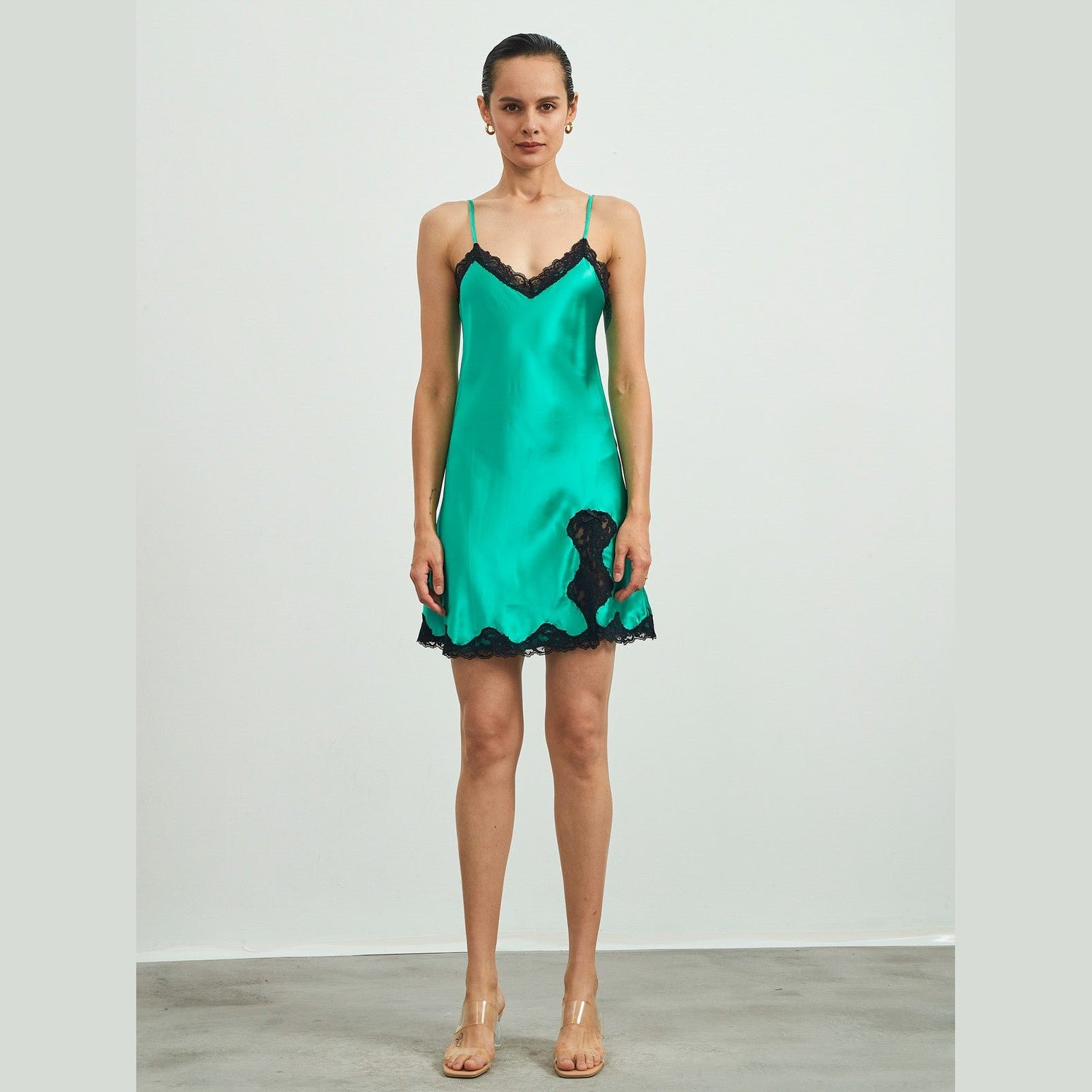 Cette ravissante nuisette en soie se distingue par ses bretelles en dentelle, son profond décolleté en V et son séduisant dos ouvert, mêlant avec élégance et sensualité. Cette nuisette est incroyablement confortable.
