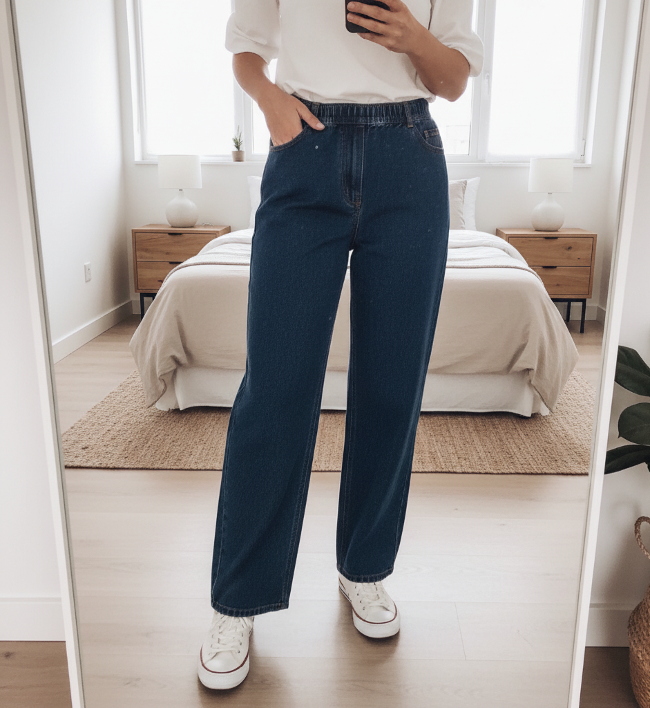Amouer cette jean, elle était exactement ce que je voulais, le denim est génial, elle taille très bien, je te conseille juste d'acheter une taille de plus que celle à laquelle tu es habituée à porter, je porte habituellement du 42 mais j'ai pris du 44 et elle était parfaite.